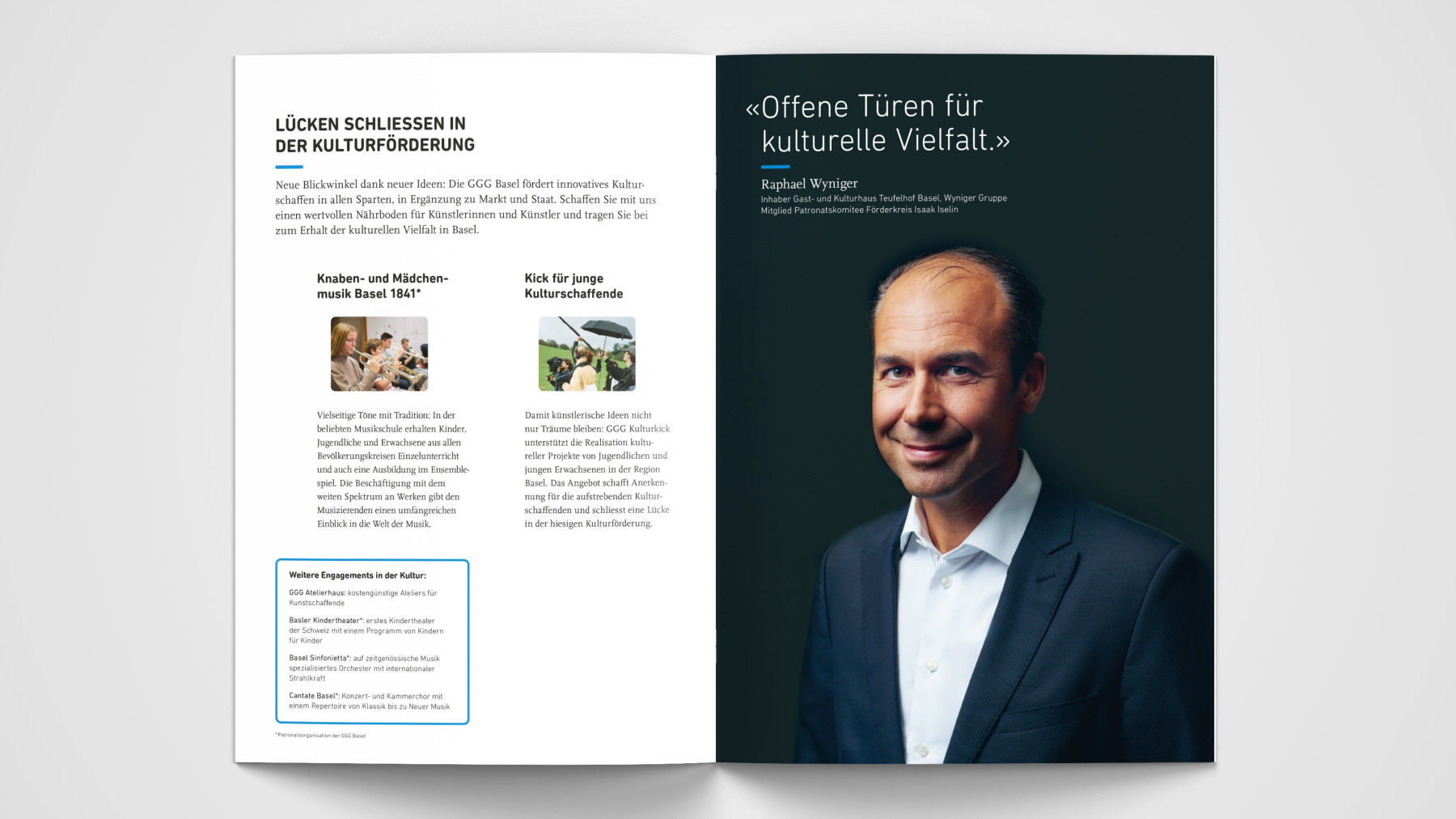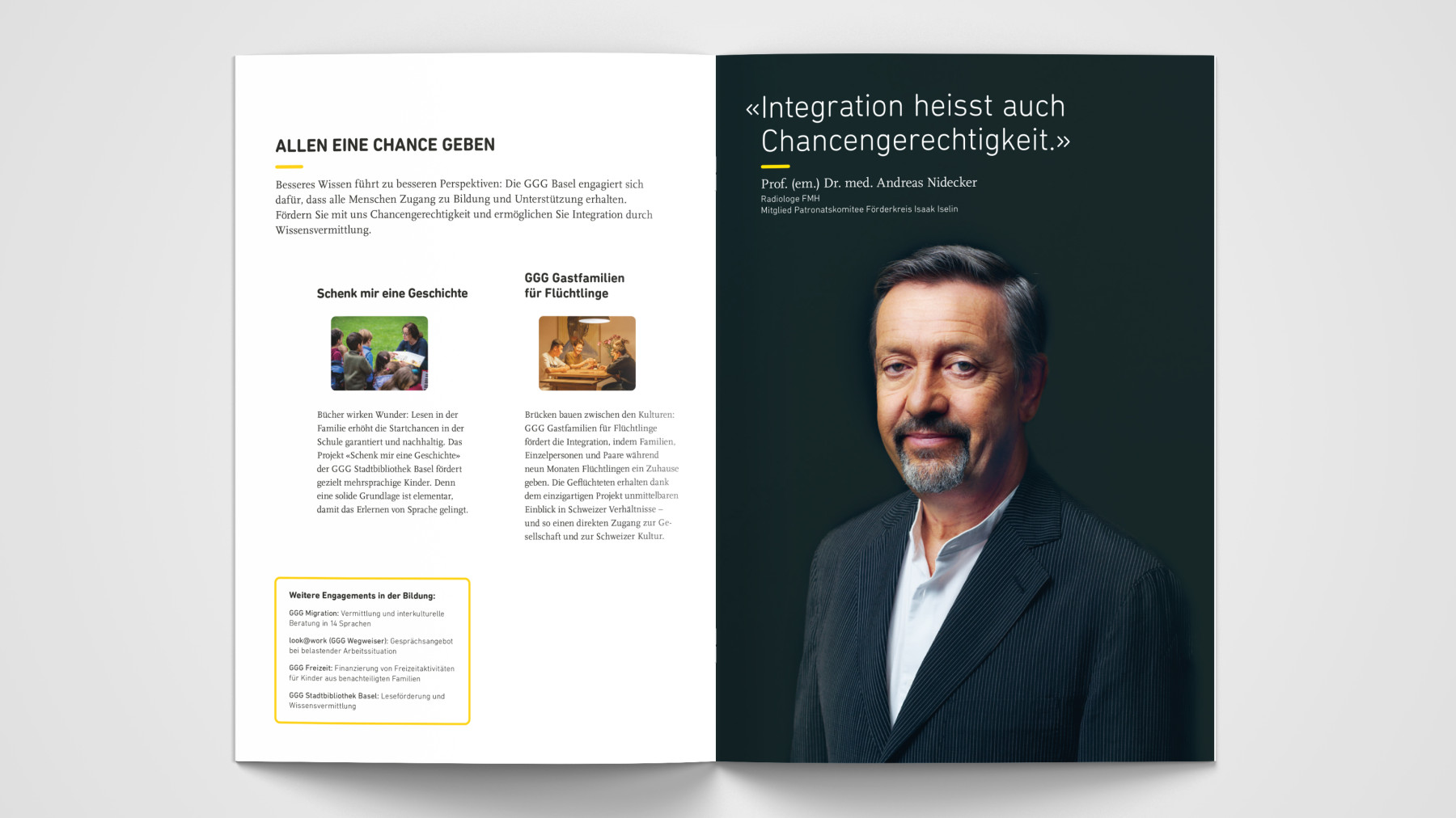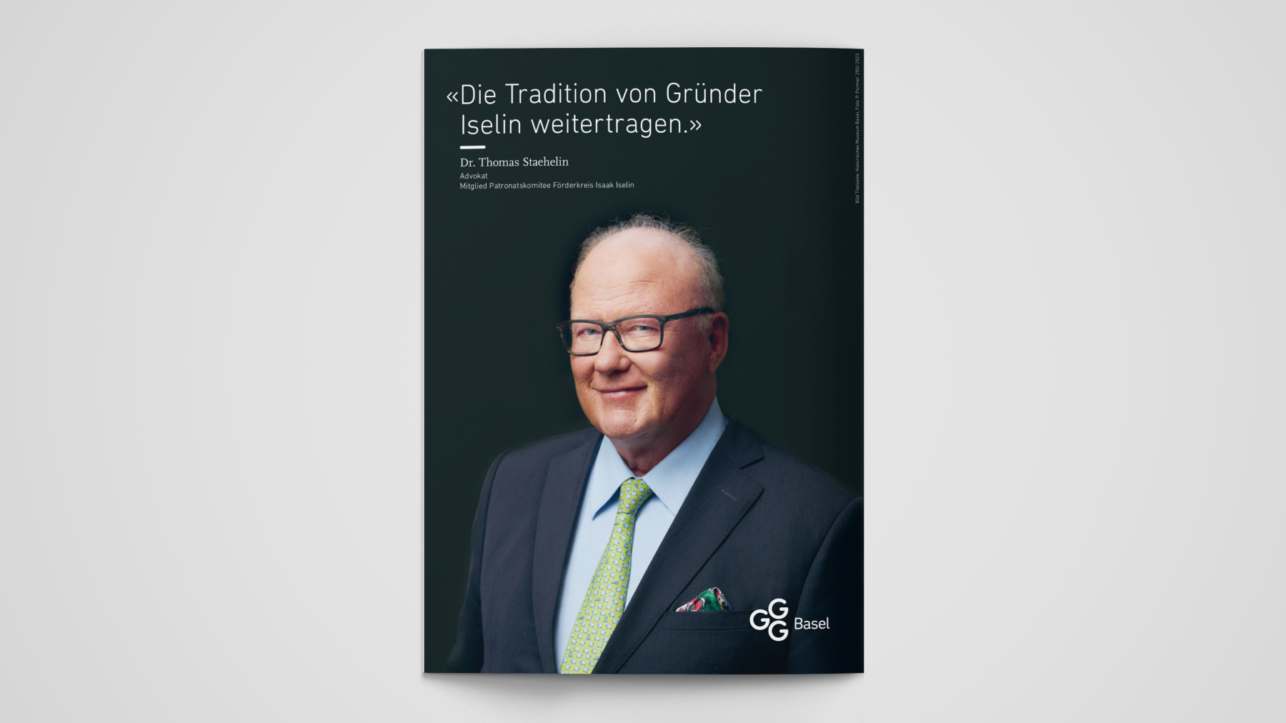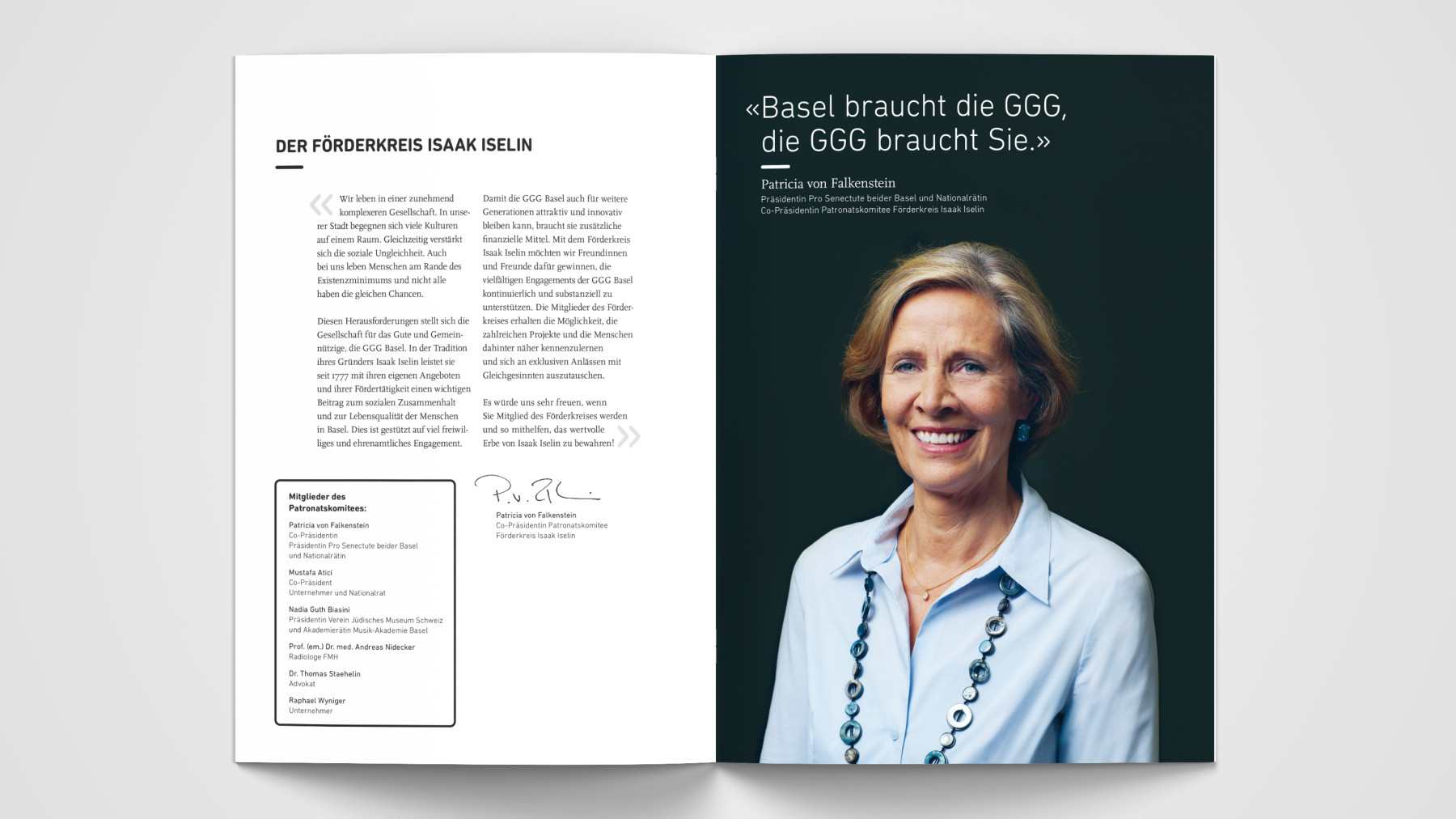 Seit der Gründung durch Isaac Iselin um 1777 engagiert sich die GGG Basel für soziale, kulturelle und bildungsnahe Angebote für weniger privilegierte Menschen. Die vielfältigen Leistungen der Organisation fassen wir in einem flexiblen Raster und starken Dach zusammen. Auch die Kommunikation fürs Fundraising gehört zu unserer Verantwortung.